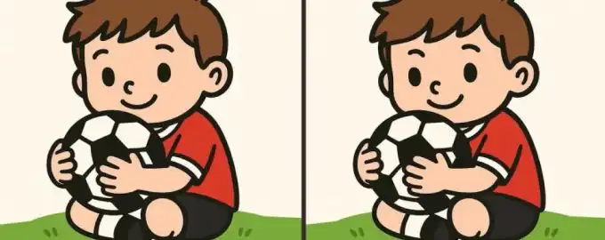 Foran dig er to næsten identiske illustrationer af en dreng, der sparker til en fodbold. Din udfordring er at finde de tre små, men tydelige forskelle mellem dem.