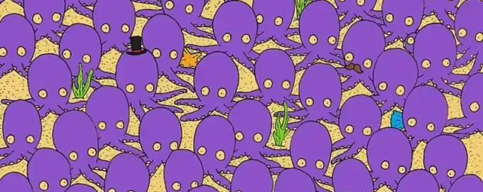 Dette puslespil tester din visuelle skarphed: blandt en flok blæksprutter er en enkelt fisk perfekt camoufleret. Nøglen til at finde den ligger i at søge