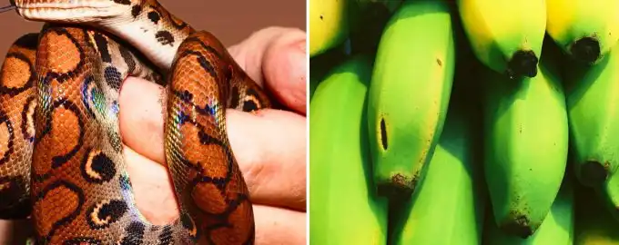 I en tilsyneladende almindelig bunke gule bananer ligger en listig slange på lur. Kun de mest skarpe øjne kan afsløre dens camouflage på få sekunder.