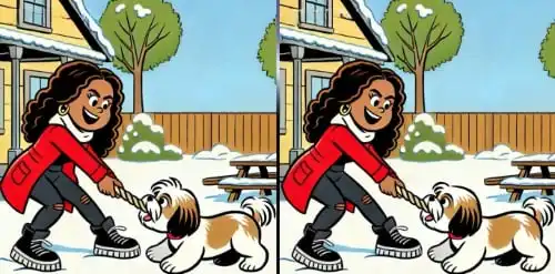 På dette billede med hunde i sneen er der en logisk fejl, der bryder med fysikkens love. For at finde den skal du ignorere de søde dyr og...