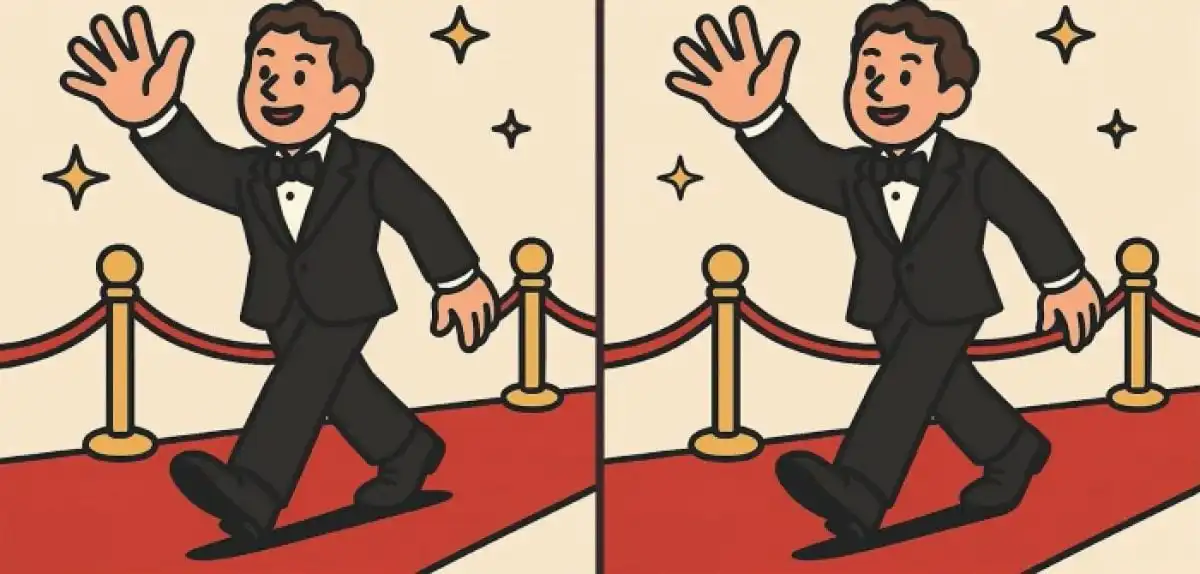 Hvis du elsker en god hjernevrider, der tester din koncentration og dit øje for detaljer, er “Find forskellene”-gåder det perfekte valg. De ser simple ud, men kan være forbavsende udfordrende. I dagens udfordring ser vi på en mand, der med selvtillid går ned ad en rød løber. Sceneriet er det samme på begge billeder… eller er det? Din mission er at finde de tre forskelle mellem dem, og du har kun 91 sekunder til at gøre det. Dette er ikke kun sjovt – det er en fremragende træning for din visuelle opmærksomhed og din evne til at spotte afvigelser fra et mønster.