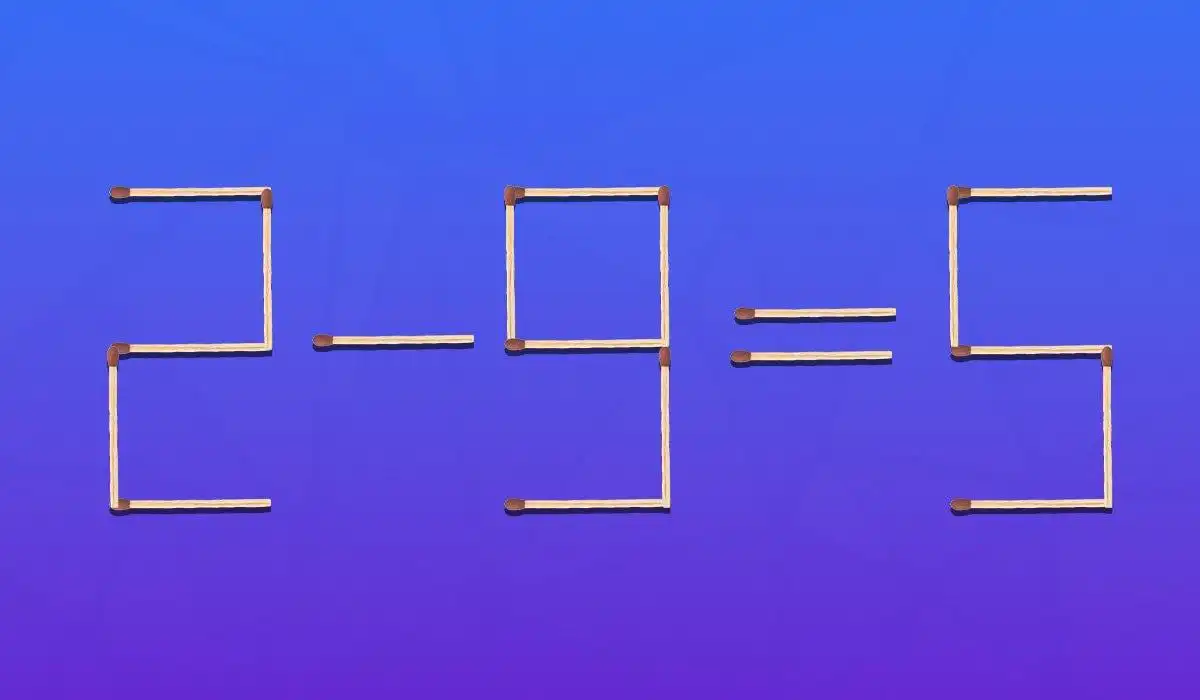 | 2 – 9 = 5 | Flyt nederste tændstik fra ‘9’ | 9 bliver til 3 |