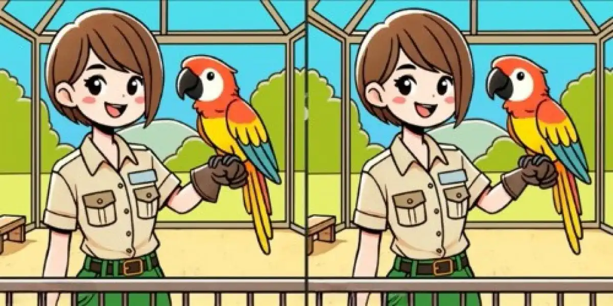 Foran dig er to næsten identiske billeder af en pige med en papegøje. Din udfordring er at finde de tre små forskelle mellem dem på kun 17 sekunder. Nøglen til succes er at scanne billederne systematisk og ikke lade dig narre af det overordnede, velkendte mønster.
