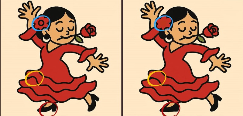 Har du nogensinde stirret på et spejlbillede og pludselig opdaget en detalje, der ikke matcher? Det er præcis den følelse, denne visuelle gåde forsøger at fange. Du bliver præsenteret for to farverige illustrationer af en pige midt i en dans. Alt ser ud til at være på plads – hendes kjole, hår, armbevægelser og baggrunden. Men tro ikke på alt, hvad du ser. Tre snedige forskelle er gemt mellem de to billeder, og din opgave er at finde dem alle på kun 43 sekunder. Dette er ikke bare et test af dit syn, men af din opmærksomhed og evnen til at holde fokus under pres.