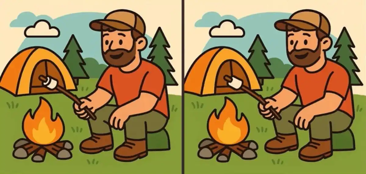Forestil dig, at du sidder og hygger ved bålet. Luften dufter af træ og brændte skumfiduser. Foran dig er to billeder af dette øjeblik. De ser ud til at være perfekte kopier. Men det er de ikke. Kunstneren har listet tre fejl ind i scenen, og din opgave er at finde dem på kun 51 sekunder. Det er en klassisk test af din opmærksomhed og evne til at spotte afvigelser.
