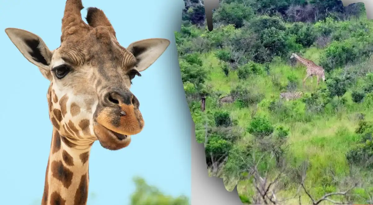 – Kig meget nøje på området omkring giraffernes hals. Er der kun hals, eller er der også et andet dyr integreret?