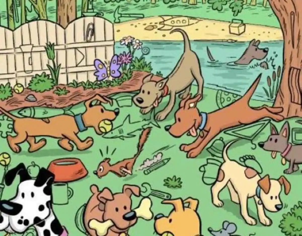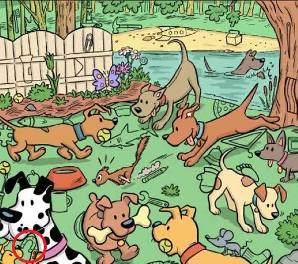 I en lysning fuld af legende hunde er en lille magnet blevet væk. Den er lige for øjnene af dig, men den smelter perfekt sammen med omgivelserne. Nøglen er at kigge efter dens karakteristiske form og farve blandt alle detaljerne.