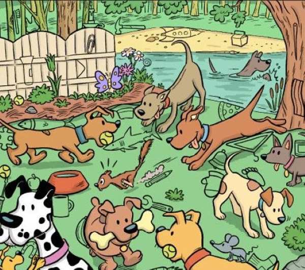 Forestil dig denne scene: En solrig dag i parken. En hel flok hunde, store som små, har fundet sammen i en lysning for at lege. Der er en dalmatiner, en schæfer, en terrier og mange flere. De snuser, hopper og hygger sig. Rundt omkring ligger der grene, blade og andre småting fra naturen. Og et sted i dette myldrende liv er en almindelig husholdningsmagnet faldet på jorden. Dit job er at finde den – og du har kun 12 sekunder til at scanne billedet. Tiden starter nu!