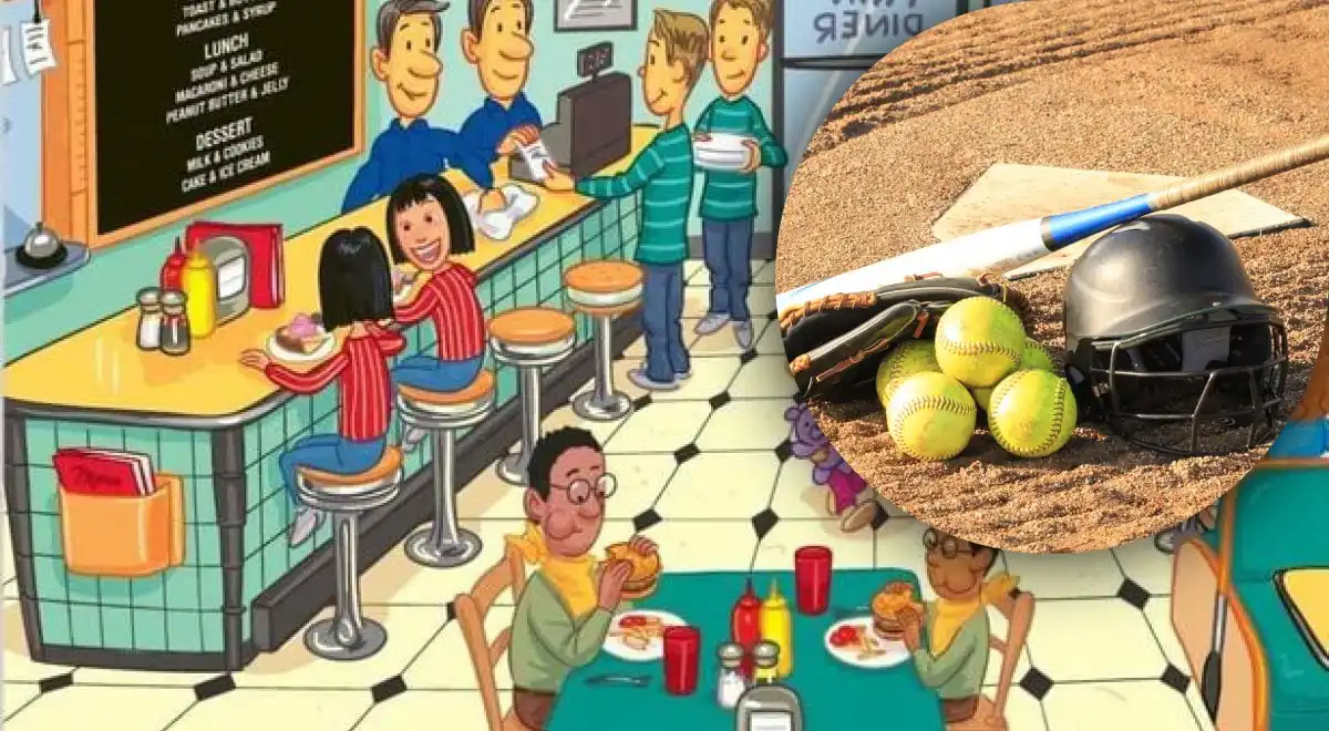 Dette er en klassisk visuel søgeudfordring: et baseballbat er perfekt kamufleret i et detaljerigt cafébillede. Nøglen til at finde det inden for de 8 sekunder ligger i at ignorere de åbenlyse elementer og i stedet søge efter den unikke, lineære form, der afviger fra de blødere omgivelser.