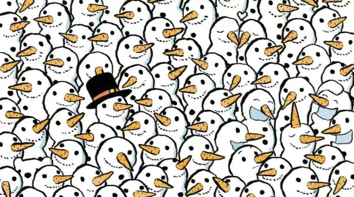 Denne type visuel gåde tester ikke kun din opmærksomhed til detaljer, men også din hjernes evne til at skelne et afvigende mønster i en masse af gentagelser. Snemændene fungerer som en form for støj, der skal distrahere dit fokus. For at klare udfordringen skal du aktivt ignorere de åbenlyse former og i stedet søge efter den ene ting, der ikke helt passer ind.