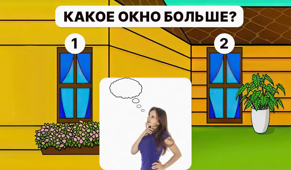 Dette er en klassisk optisk illusion, hvor perspektivet spiller dig et puds. Selvom det ene vindue ser meget større ud end det andet, er de faktisk helt identiske i størrelse. Nøglen til at gennemskue illusionen ligger i at ignorere husets konstruktion og fokusere på selve vinduesrammerne.