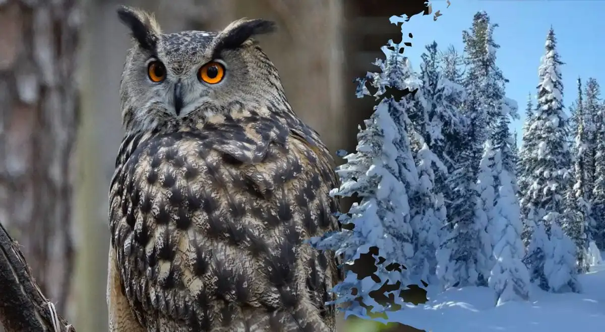 I et tæt snelandskab af nåletræer er en mester af kamuflage gået i hi. Uglen er der, men dens fjerdragt smelter næsten fuldstændigt sammen med bark og sne. Nøglen til at finde den ligger i at genkende en anden form end træernes naturlige mønstre.
