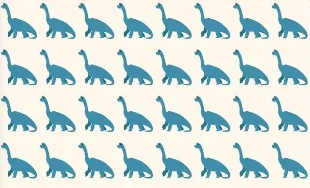 Har du nogensinde stirret på et mønster, indtil det hele begyndte at flyde sammen? Det er præcis den udfordring, denne visuelle gåde stiller dig over for. Forestil dig, at du er paleontolog, der gennemgår et arkiv med perfekte fossiltryk. De ser alle identiske ud, men din erfaring siger dig, at der er en fejl i registreringen – én enkelt ‘fossil’ adskiller sig fra alle de andre. Din opgave er at finde den anderledes dinosaur på kun 5 sekunder. Tiden begynder nu.