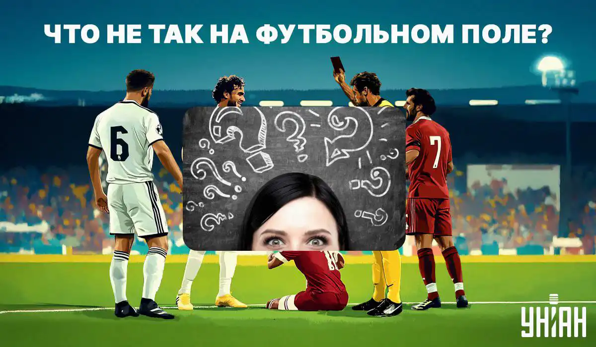 Fejlen på billedet er, at dommeren holder et sort kort. Et sort kort eksisterer simpelthen ikke i officiel fodbold. Det er en ren fantasi, der bryder med sportens etablerede ikonografi. Løsningen handler altså om at genkende et brud på de grundlæggende visuelle regler for sporten.