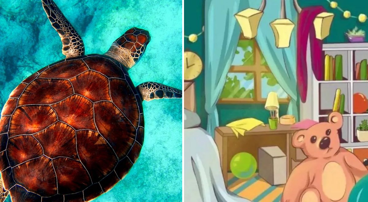 Forestil dig, at du skal finde dit kæledyr i et rodet rum. Tiden er knap, og hvert sekund tæller. Dette er præcis den udfordring, du står over for. I det detaljerede billede af et soveværelse med seng, hylder, puder og tæpper er en lille skildpadde gemt med omhu. Opgaven lyder enkelt: find den på kun 10 sekunder. Men det er netop tidsbegrænsningen og den overvældende mængde detaljer, der gør det til en rigtig test af din opmærksomhed og din evne til at skelne mønstre.