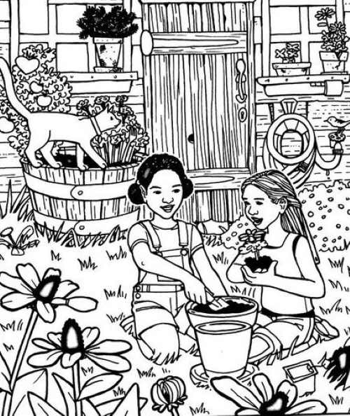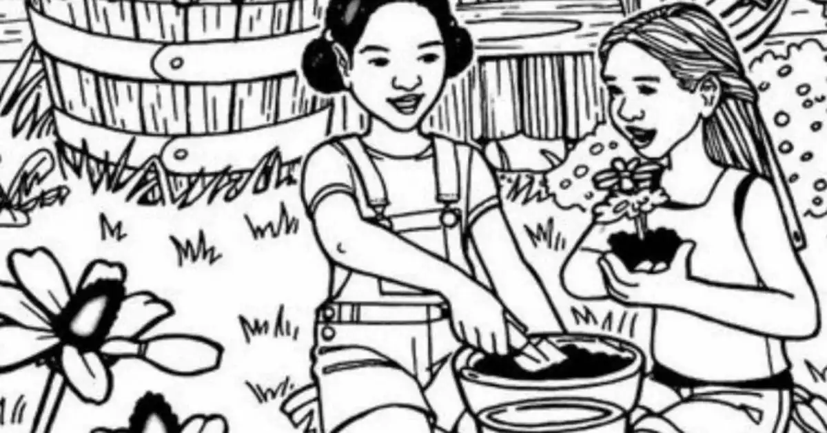 Forestil dig en solrig eftermiddag i haven. To piger er dybt optaget af at plante farverige blomster foran deres hus. Billedet bugner af liv og detaljer – blade, blomster, pigenes hår og kjoler. Men et sted i denne tilsyneladende enkle scene er en ring perfekt kamufleret. Det er ikke et spørgsmål om at den er gemt bag noget, men snarere om at den blander sig så godt med omgivelserne, at dit øje nemt overser den. Dette er en klassisk test af din visuelle skarphed og din evne til at skelne et objekt fra sin baggrund.