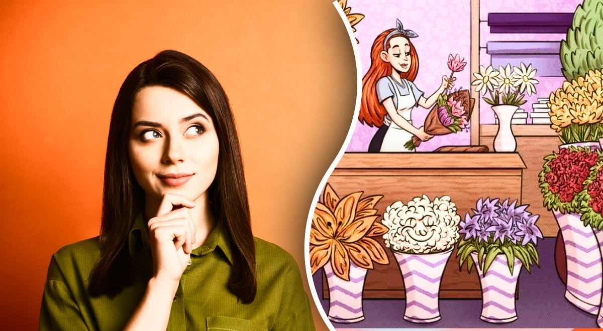 I en farverig blomsterbutik er tre ansigter perfekt camoufleret blandt blomster og blade. Kan dit skarpe øje afsløre dem alle på kun seks sekunder? Nøglen er at lade blikket hvile og søge efter menneskelige konturer, hvor man mindst venter dem.