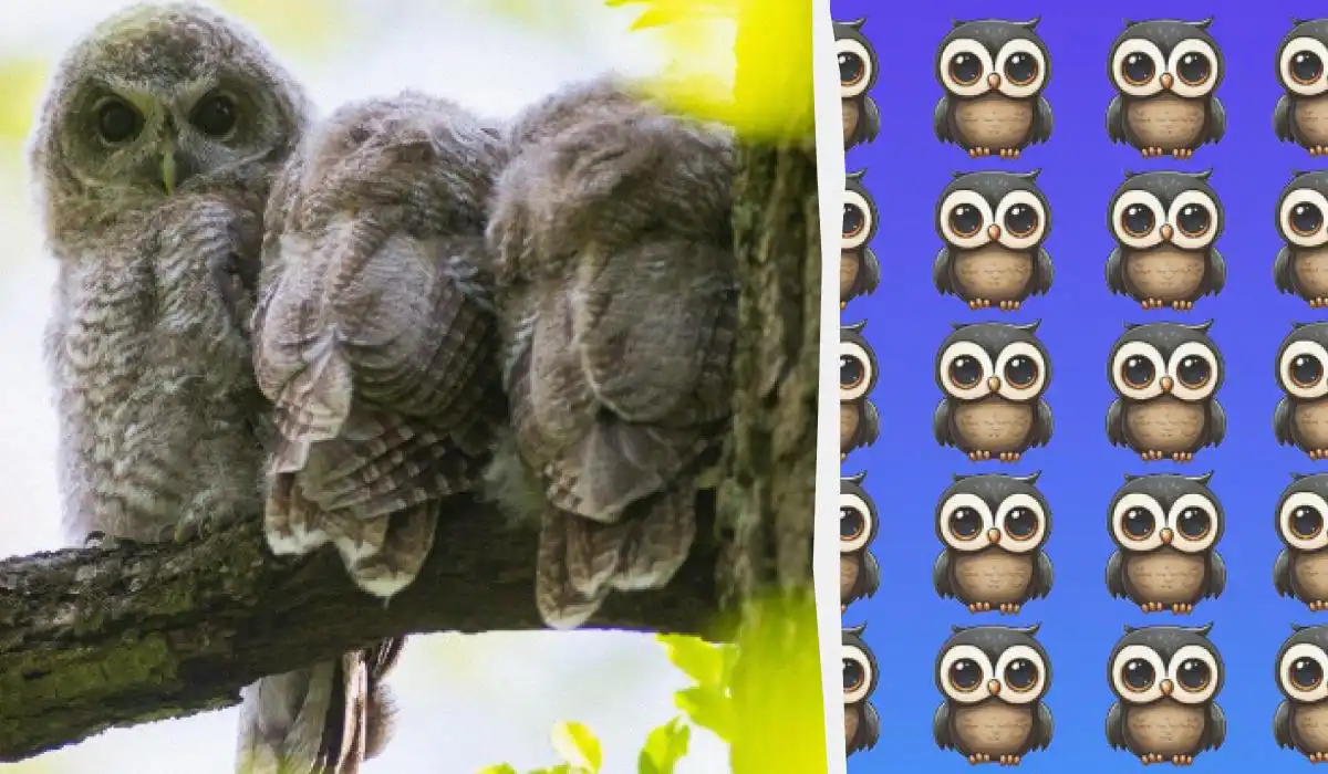 Denne visuelle gåde udfordrer din opmærksomhed og logiske sans: blandt en tæt flok af næsten identiske ugler skal du finde den ene, der bryder mønsteret. Nøglen er at scanne systematisk og lægge mærke til subtile forskelle i udseendet.