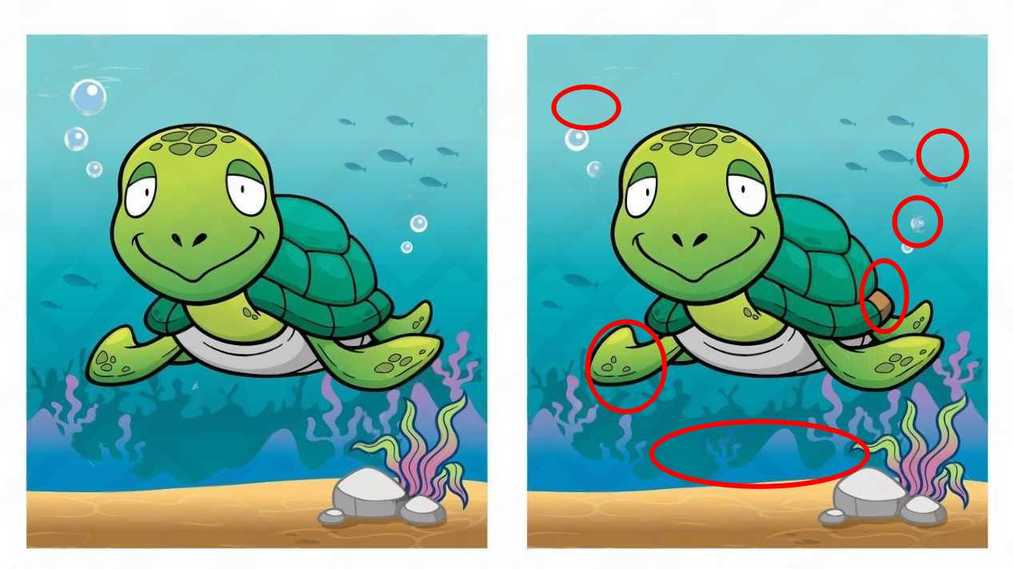 Forestil dig, at du sidder og slapper af, og pludselig bliver du udfordret til en hurtig hjernetræning. Foran dig er to billeder af en sød skildpadde, der ser helt ens ud. Men det er de ikke. Der er seks små, snedige forskelle gemt, og du har kun 15 sekunder til at finde dem alle. Det lyder måske som masser af tid, men når klokken tikker, kan selv de mest åbenlyse detaljer forsvinde for øjnene af én. Dette er ikke bare et spil; det er en øvelse i visuel skarphed og koncentration.