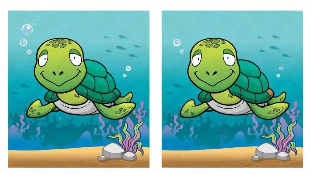 Kan du finde alle seks forskelle mellem de to næsten identiske billeder af skildpadder på kun 15 sekunder? Denne visuelle gåde tester din opmærksomhed og evnen til at spotte små detaljer under pres. Nøglen er at scanne billederne systematisk i stedet for at kigge tilfældigt rundt.