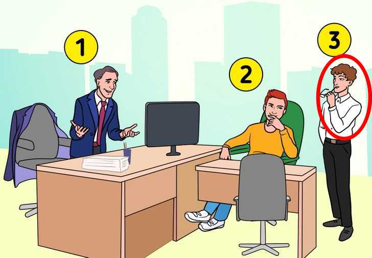 Tre mænd sidder omkring et bord, men kun én af dem er den rigtige chef. Svaret er gemt i en lille, overset detalje, der afslører den sande hierarki. Kan du spotte den inden for 5 sekunder?