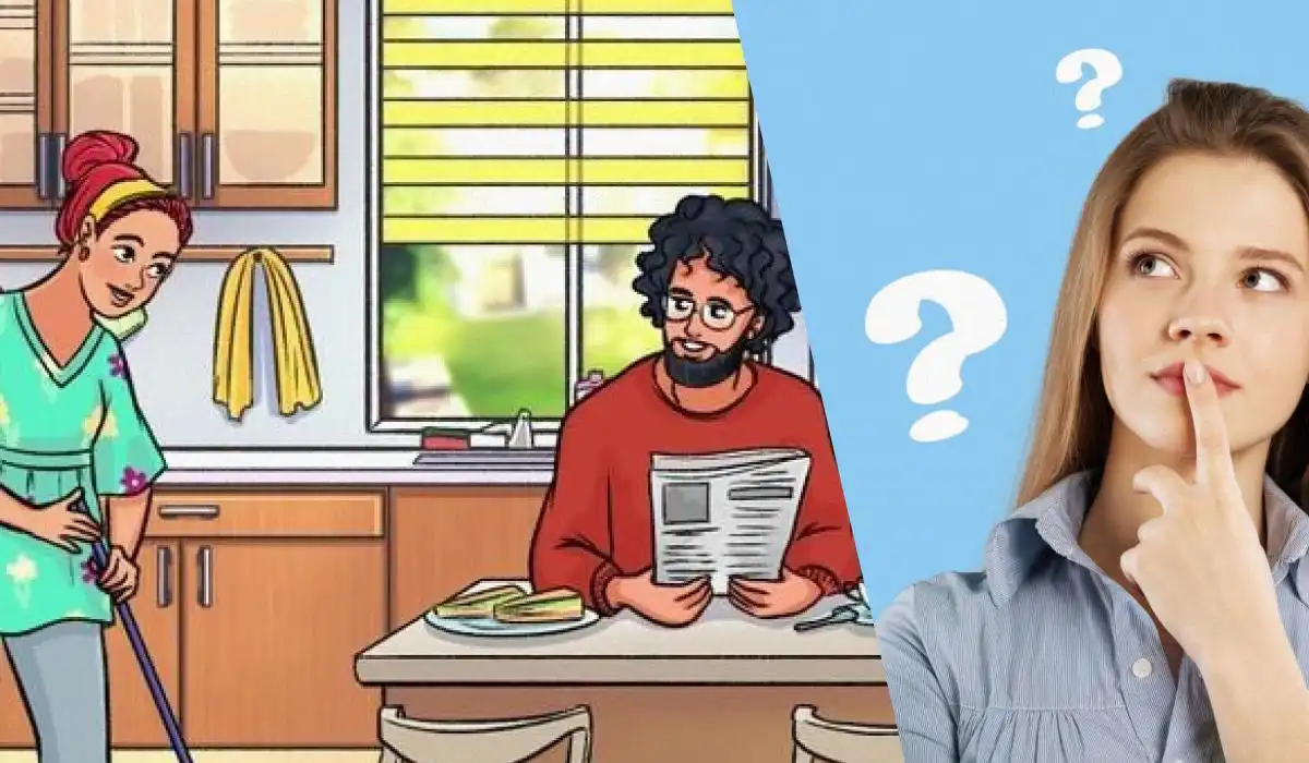 Forestil dig en stille morgen i et køkken. En mand sidder roligt og læser avis med en kop te, mens hans partner vasker gulvet. Scenen virker fuldkommen almindelig og fredfyldt. Din opgave er at gennemskue illusionen og finde den ene ting, der er fundamentalt forkert i dette billede. Du har kun 11 sekunder! Prøv at løse det selv, før du læser videre.
