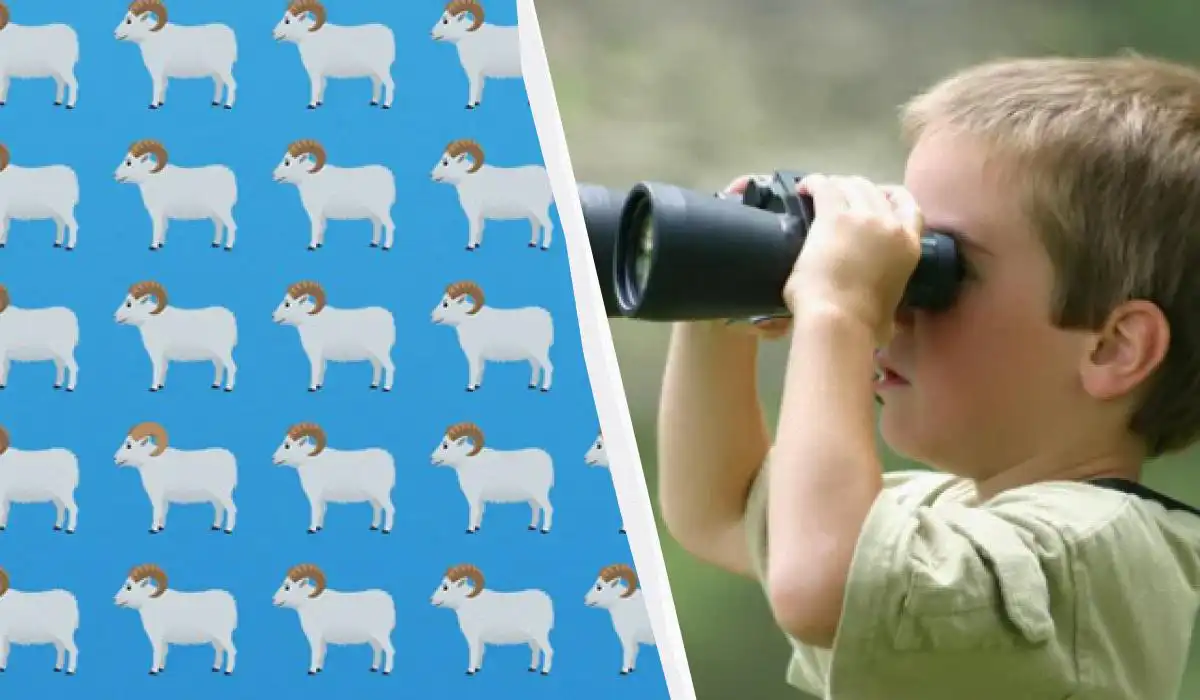 Se her, den skjulte vædder er placeret i den syvende række fra toppen, helt ude til venstre. Dens hoved er drejet en anelse mere opad og til højre sammenlignet med alle de andre, hvilket bryder det ellers perfekte mønster. Det er en fejl i gentagelsen, og det er præcis det, du skal fange.